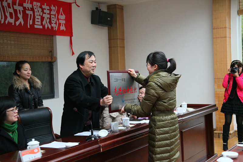圖為集團高副書記為獲得2011年度婦聯先進集體頒獎