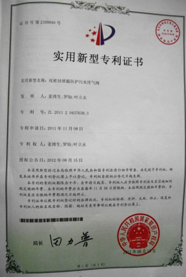 日前,集團“雙密封泄漏防護污水排氣閥”專利項目得到國家知識產權局正式批復,獲實用新型專利授權。