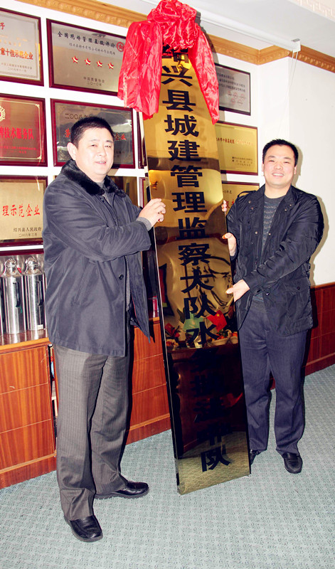 ,紹興縣城建管理監(jiān)察大隊水務(wù)執(zhí)法中隊成立授牌儀式在排水公司舉行。縣城管辦副主任許立人、集團(tuán)公司副總經(jīng)理馮梁峰等領(lǐng)導(dǎo)參加儀式。