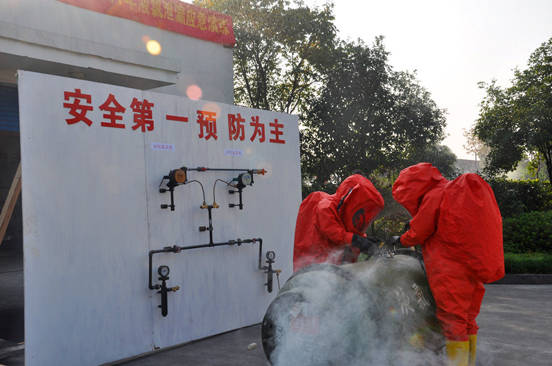 為保障冬季供水安全,進(jìn)一步加強(qiáng)危化品運(yùn)行管理,11月24日下午,公司開(kāi)展了2011年液氯泄漏應(yīng)急演練,共20余名職工參加。紹興縣安監(jiān)局、鏡湖新區(qū)公安局、縣水務(wù)集團(tuán)等相關(guān)部門(mén)領(lǐng)導(dǎo)到場(chǎng)觀摩指導(dǎo)。