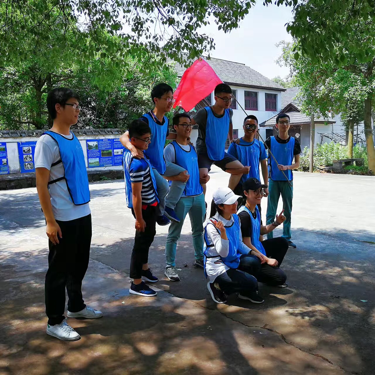 活動中,參加人員被隨機分為四隊,通過各小組集體討論,確定了各自的隊名、隊旗、隊標、隊歌、口號等。經教練針對性的啟發和點評,較圓滿的達到了挑戰自我、凝聚團隊的培訓目的。